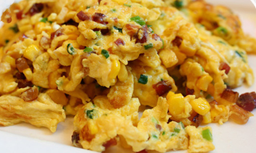 Fried Eggs with BBQ Pork & Corn