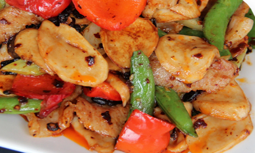 Fried Pork Neck Meat with Mushroom in Chili Sauce