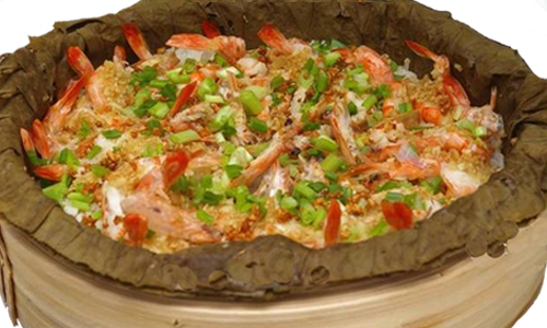 Steamed Seafood Rice with Shrimp & Garlic in Basket